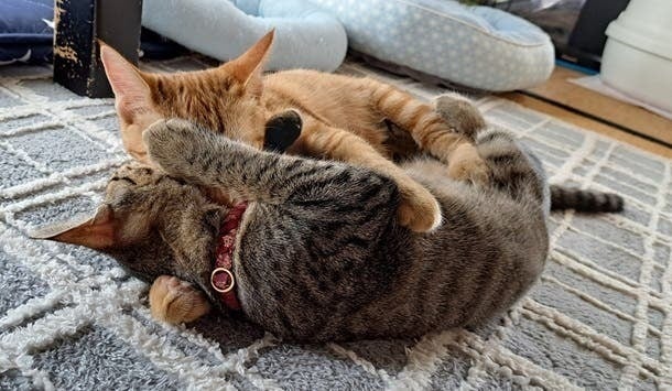 子猫たちがKit Catとじゃれ合う姿を見るのも楽しいです。