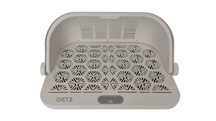 DiETZ(ディーツ)のパーソナルフットウォーマーは、空気の汚れや塵を吸着する浄化、消臭効果、カビ発生防止など様々な効果があるマイナスイオン消臭機能を内蔵しています。