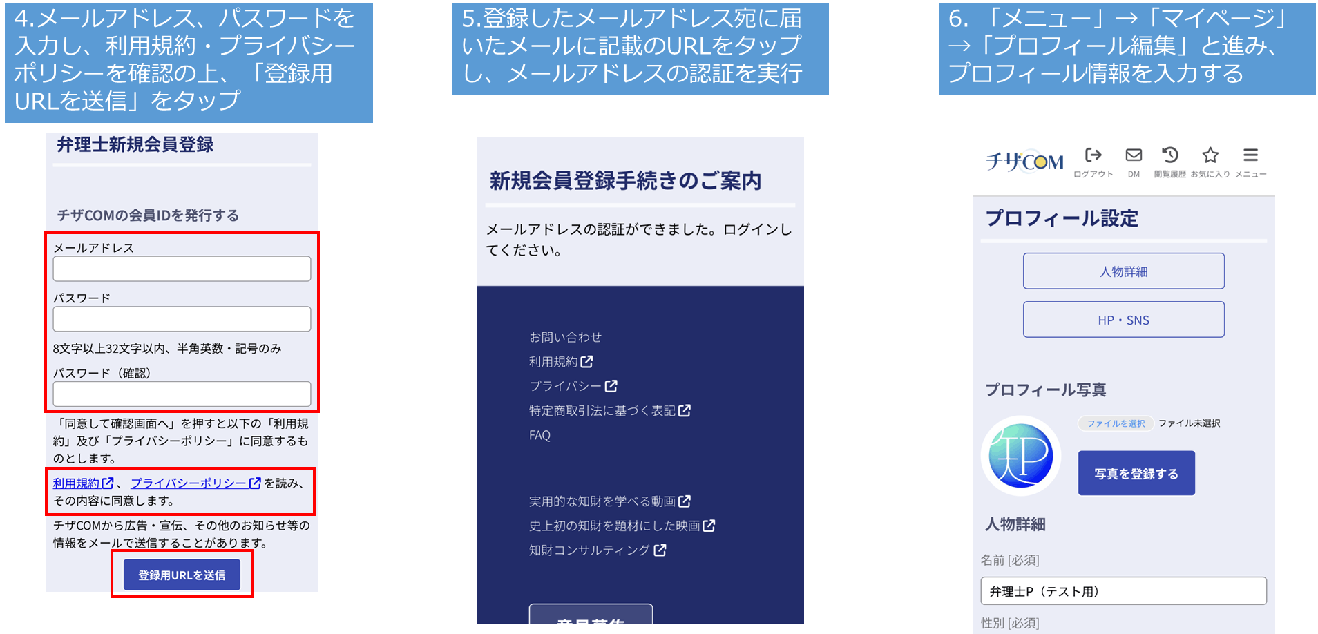 ●弁理士は、プロフィール欄にHP、SNS、得意分野、採用情報などの情報を掲載することができる