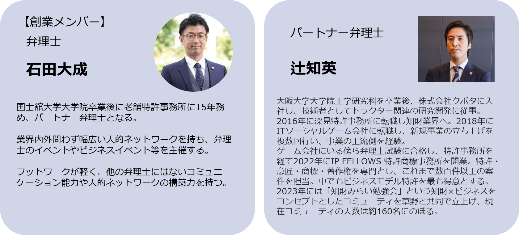 富士ゼロックス㈱(現富士フイルムビジネスイノベーション㈱)で3年ほど知的財産(主に特許)の仕事をしていましたが、会社員としての仕事にはできることの限界があると感じ、自分自身でのやり方を確立しようと起業しました。元々は自分自身も知的財産のことを全く知らなかったため、こんなに重要で面白い分野なのにほとんどの人が知らないことにもどかしさを感じ、世の中の多くの人に知的財産を知ってもらいたいという気持ちが強くなっていきました。