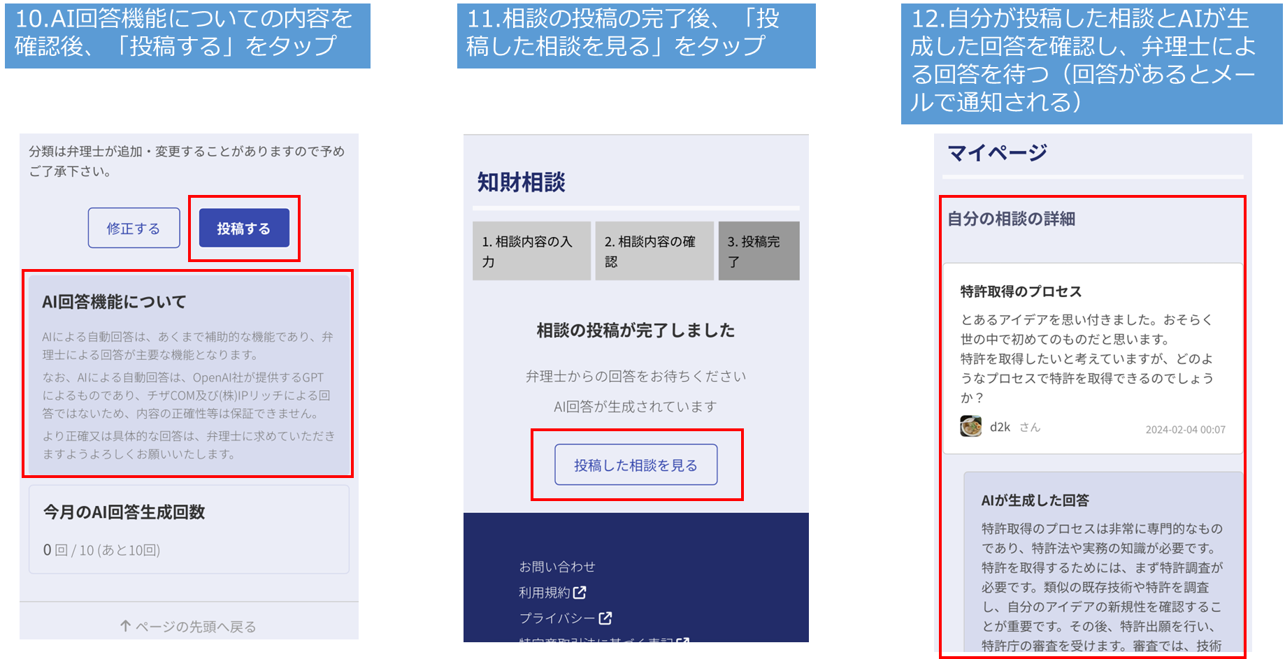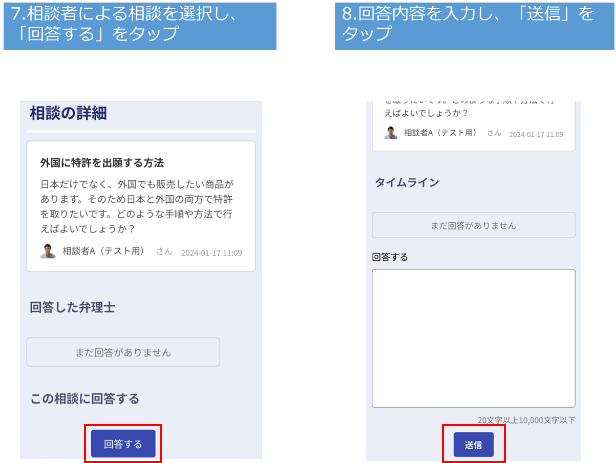 ●相談者が相談内容を投稿すると、登録している弁理士が回答を行うことができる(何名でも回答可能)