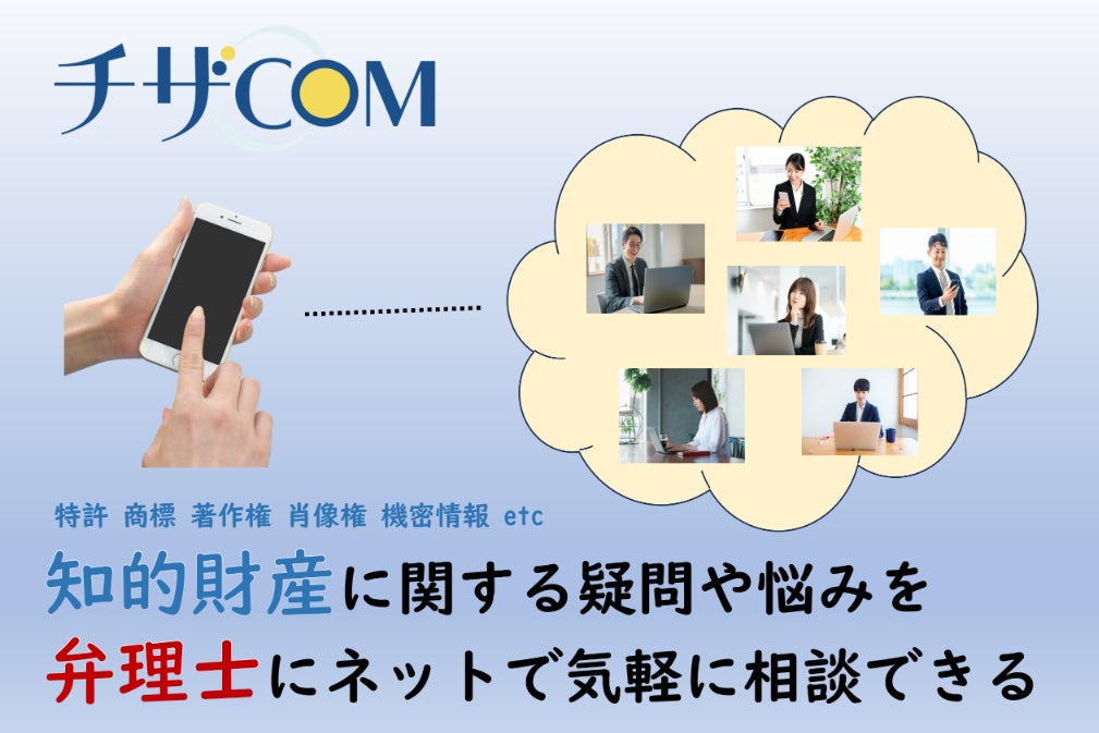 チザCOMは、知財に関するコミュニケーションを円滑にし、知財に関するあらゆる疑問や悩みを解消したり、相談者と弁理士の適切なマッチングをしたりするためのサービスです。
