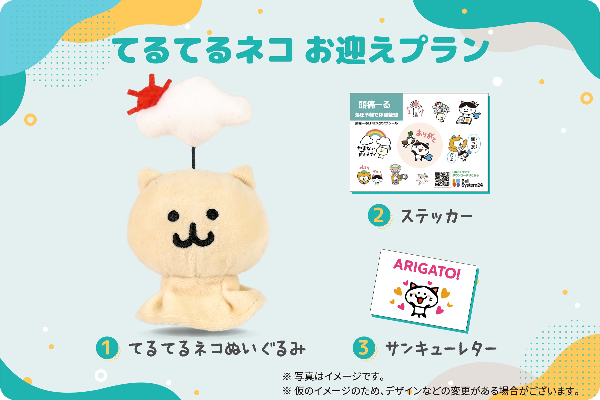 てるてるネコのぬいぐるみがゲットできるプランです!