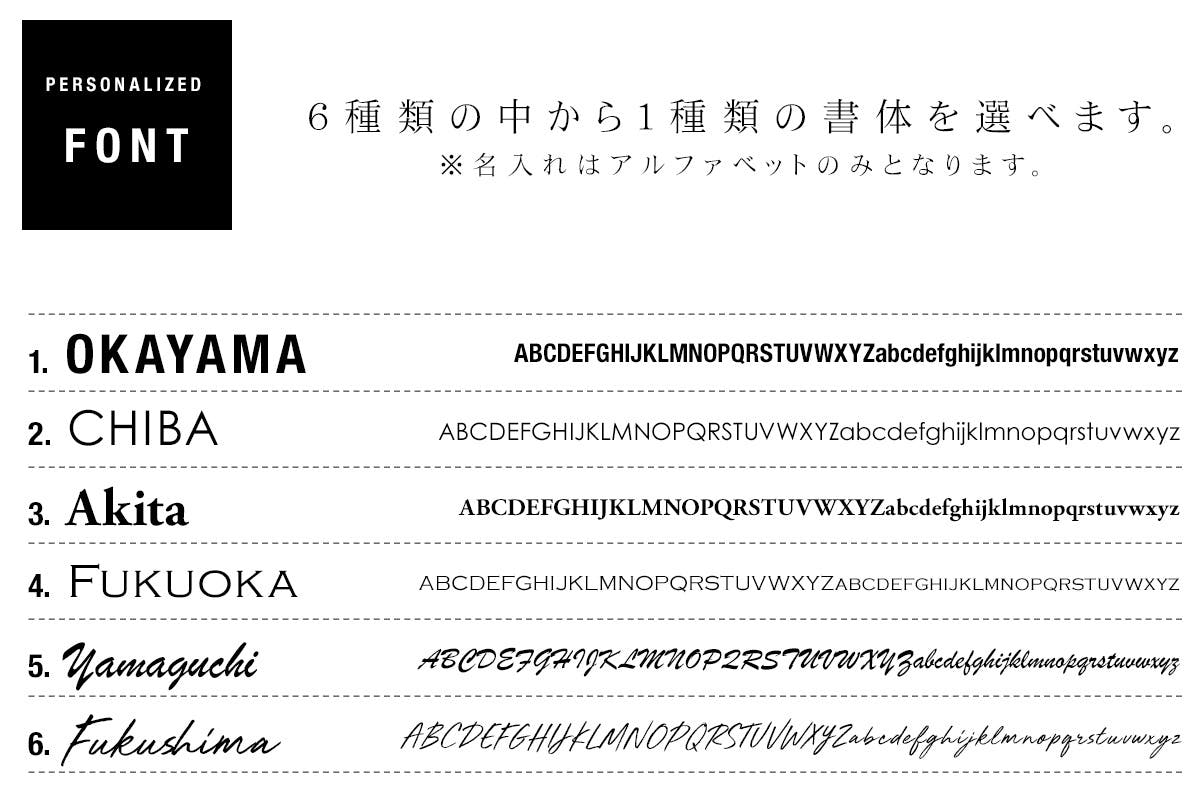 アルファベットの大文字・小文字は、お選びいただいたフォントにあわせて適宜調整させていただく場合がございます。