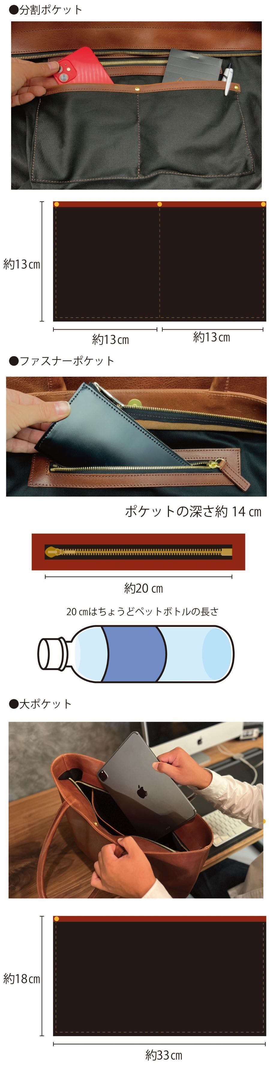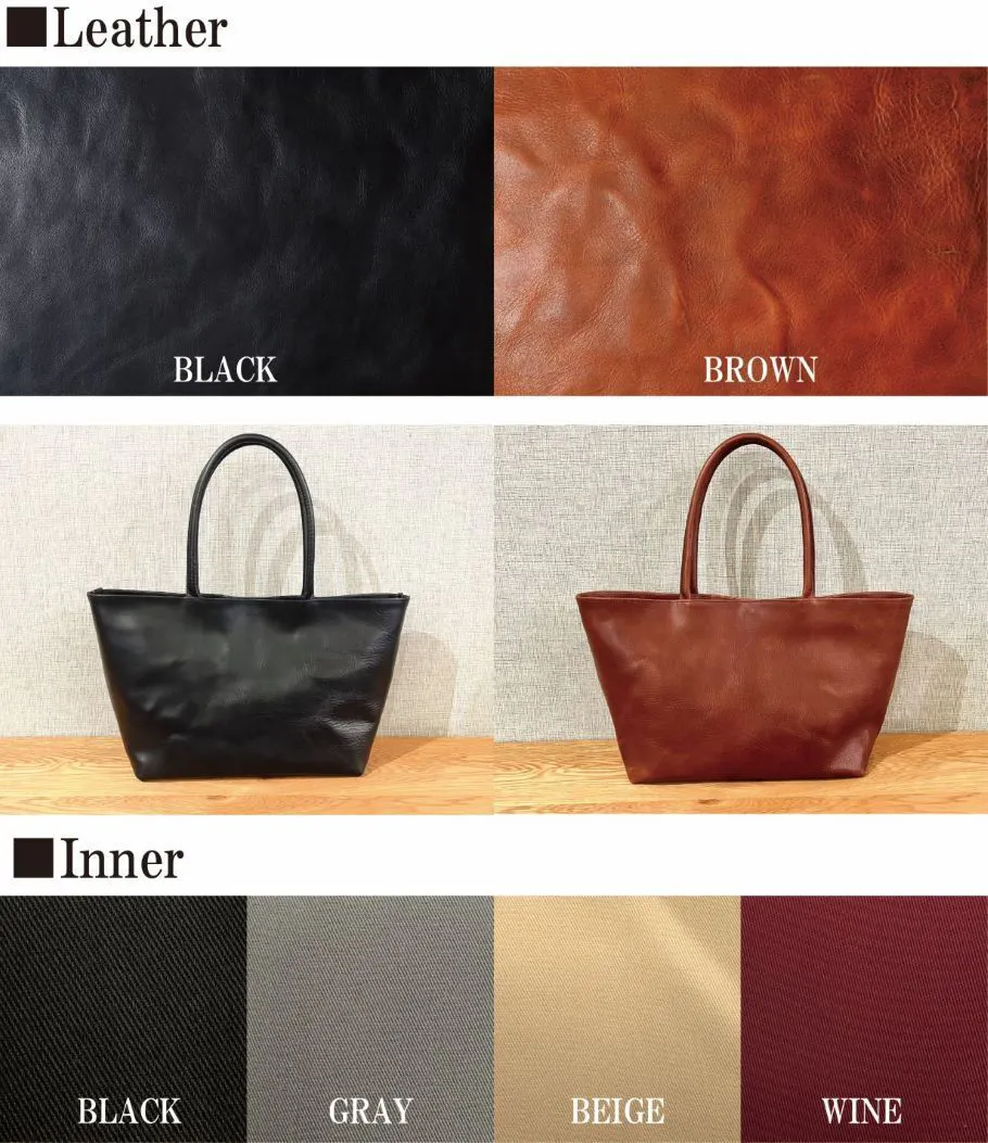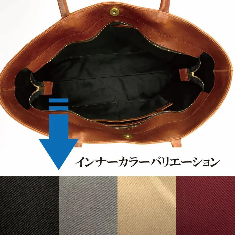 個性を感じられるよう、インナーカラーを4色から選べるようにしました。エイジングと共に、更に愛着の湧くトートバッグに。