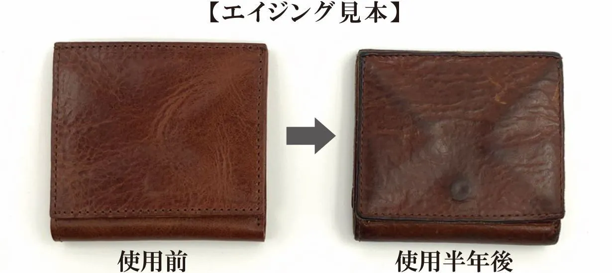 高品質で上質なオイルワックスを4回も塗り込むことで、革を折り曲げたり、引っ張ったりした時にオイルが繊維内を移動し、常に革表情が変化し、『ヴィンテージな風合い』に経年変化(エイジング)していきます。