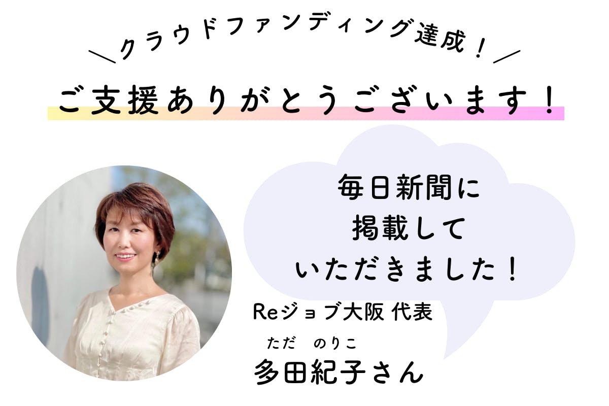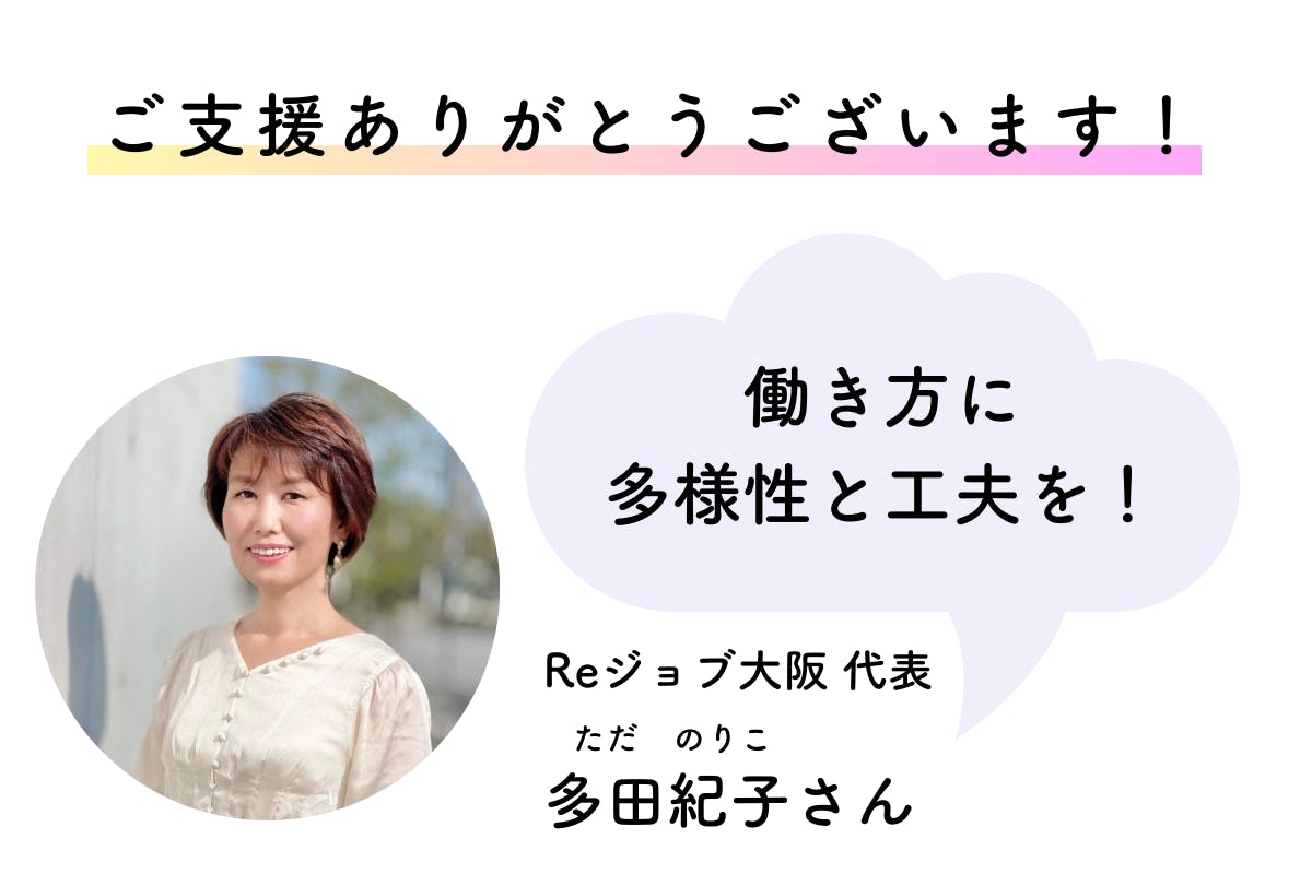 みなさま、はじめまして。NPO法人Reジョブ大阪代表の多田紀子です。