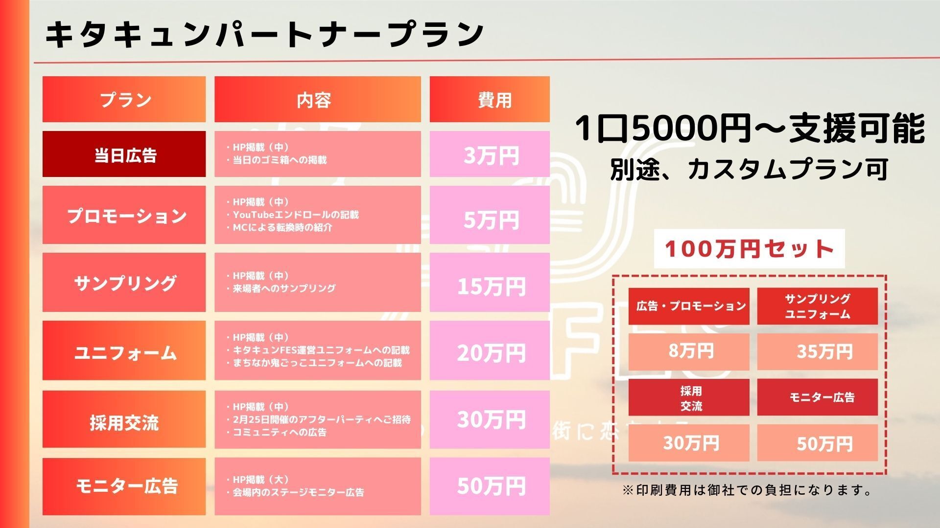 キタキュンFES公式HPの掲載や活動ダイジェスト動画エンドロールへの記載、転換時のMCによる紹介を行います。