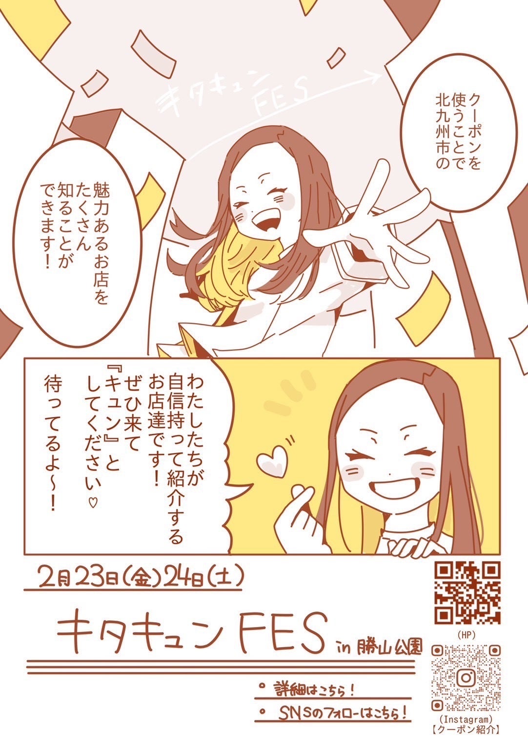 また、北九州市とキタキュンFESを「より多くの人に堪能してもらいたい」という想いから、地域の方々にご協力いただき100店舗でのサービスを受けることができるキタキュンクーポン、会場内でたくさんの体験をできるようにと100円×10枚綴りの(会場内で1,000円分のお買い物ができる)キタキュンPAYを入場特典として準備をしています。