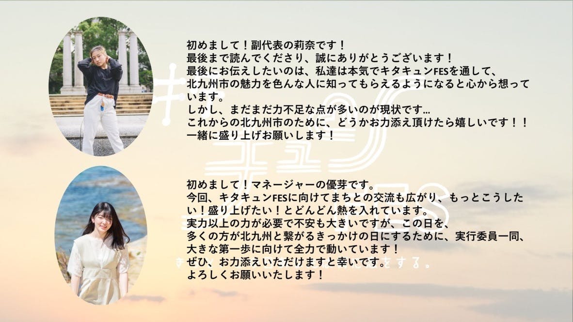 私たちは必ずキタキュンFESを毎年開催できるような形をつくり、より多くの人と共にさらに北九州市を盛り上げていきます。