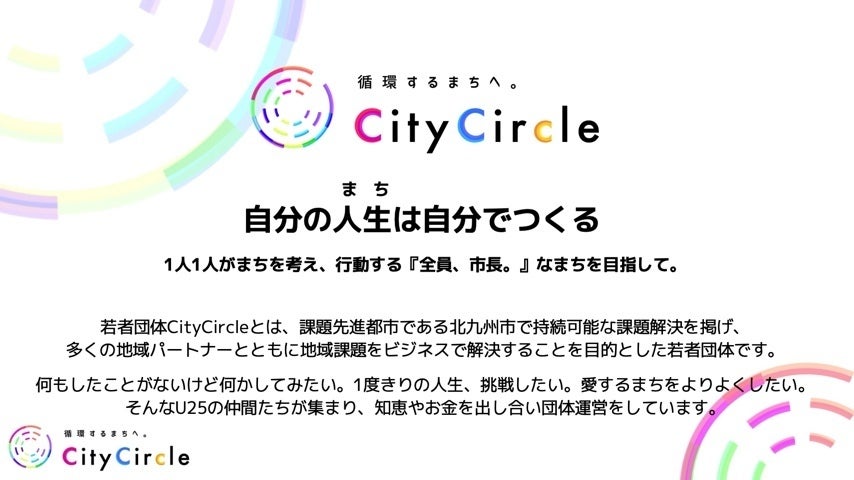 この課題を解決するため、「全員、市長。なマインド」を掲げ、若者が主体となって地域が抱える課題をビジネスにより持続的に解決する団体として『若者団体CityCircle』を立ち上げました。