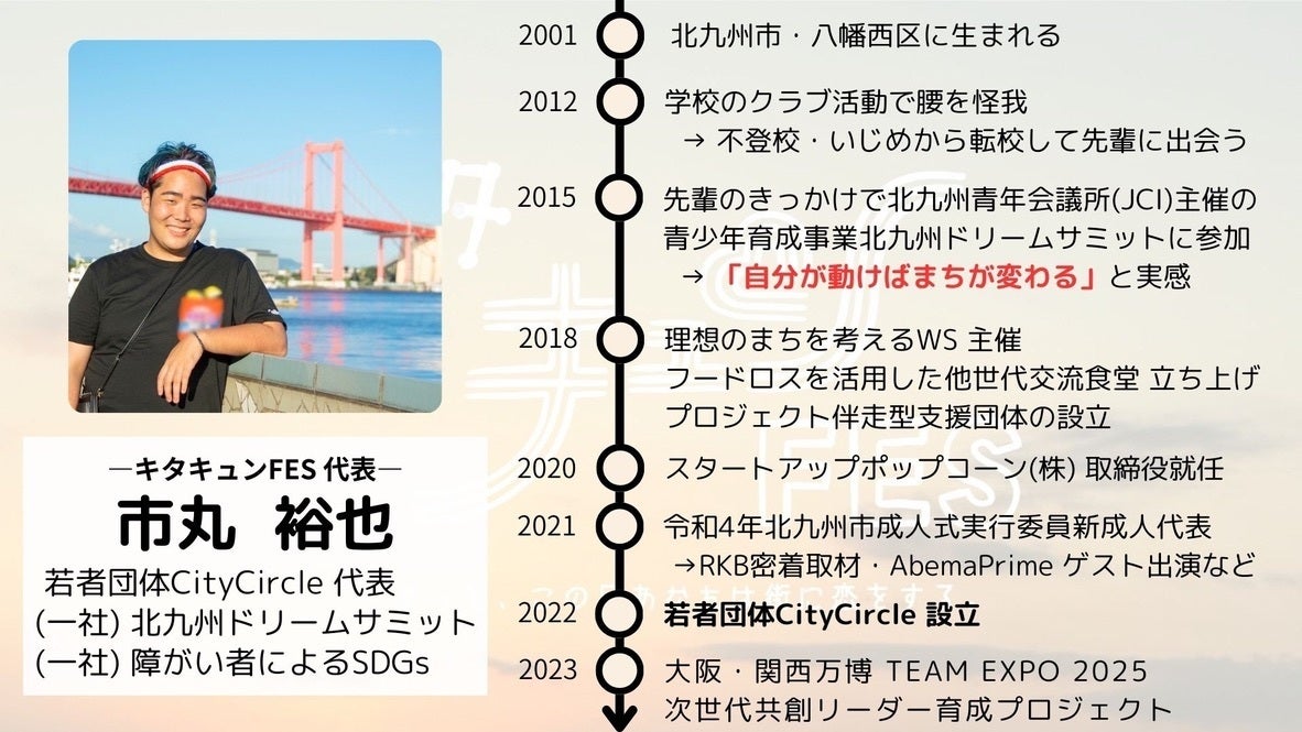 私は福岡県北九州市で生まれ育ち、中学2年生の時に北九州青年会議所主催「北九州ドリームサミット」に参加しました。
