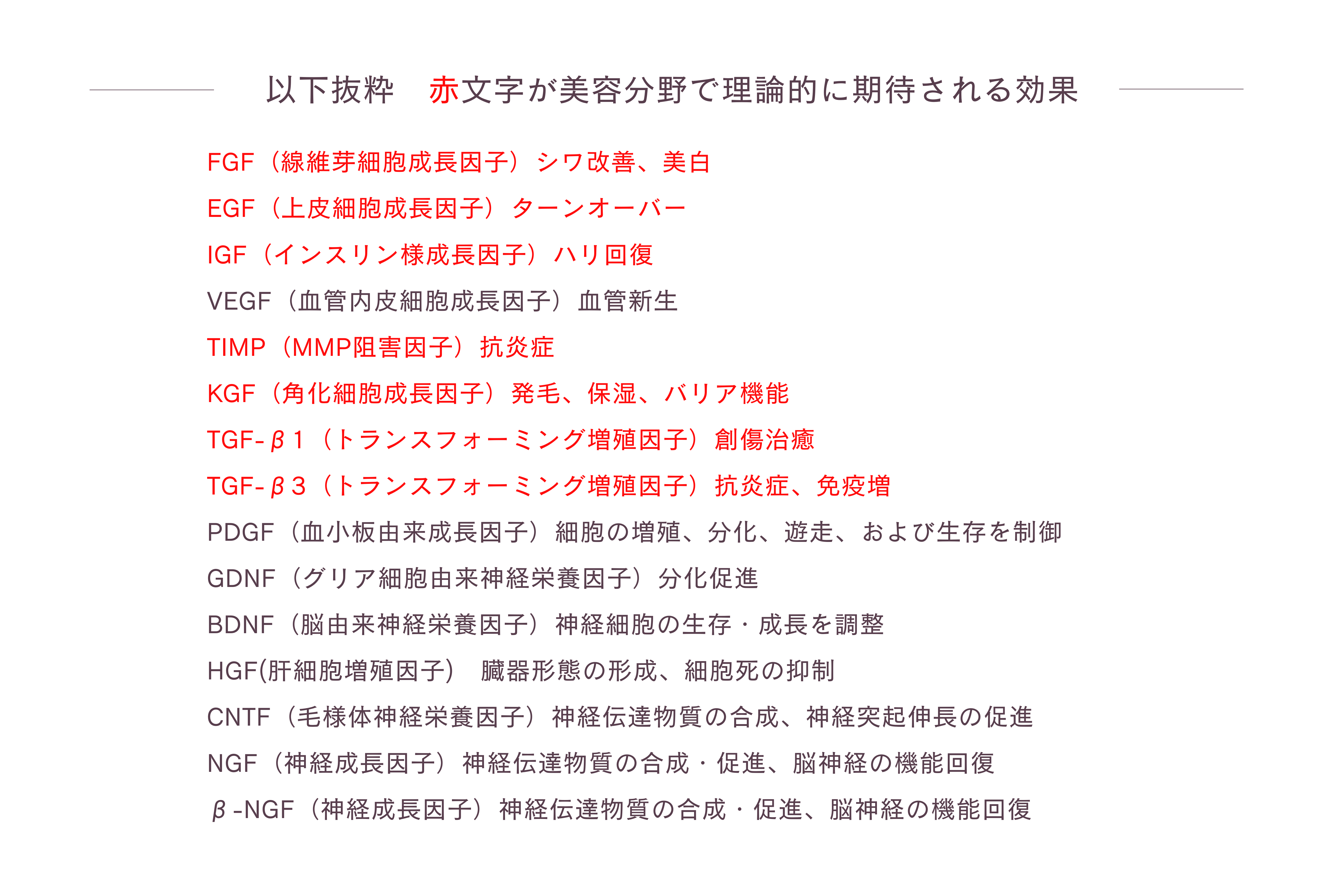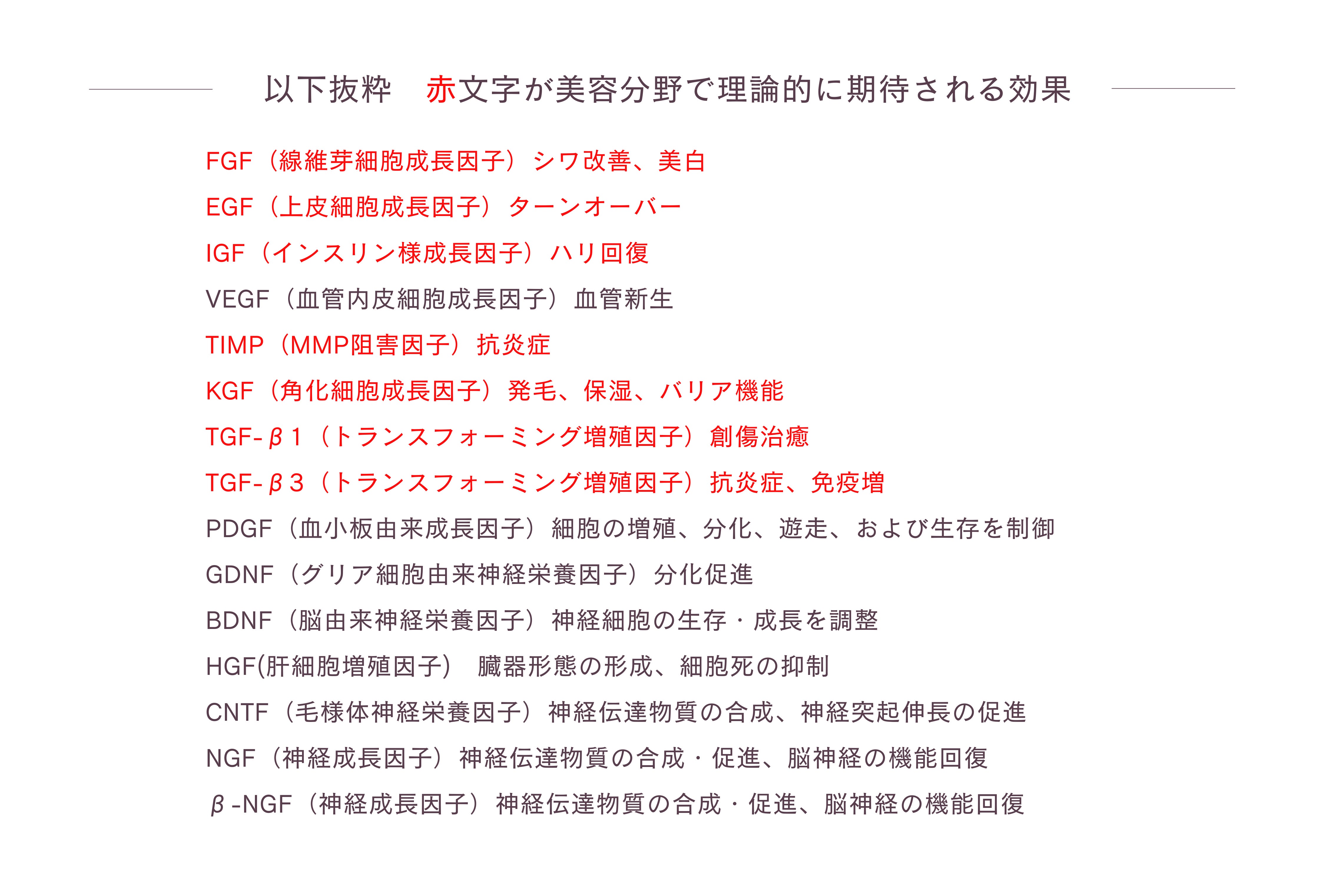 ヒト歯髄幹細胞培養上清液には、約500種類にも及ぶ、成長因子(サイトカイン)が含まれています。