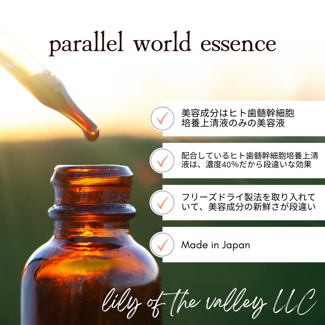 パラレルワールドエッセンスは、まだ市場に出てから日が浅い為、知名度が低くまだまだ改良の伸び代のあるスキンケア商品でございます。市場最大量のヒト歯髄幹細胞培養上清液を配合しています。