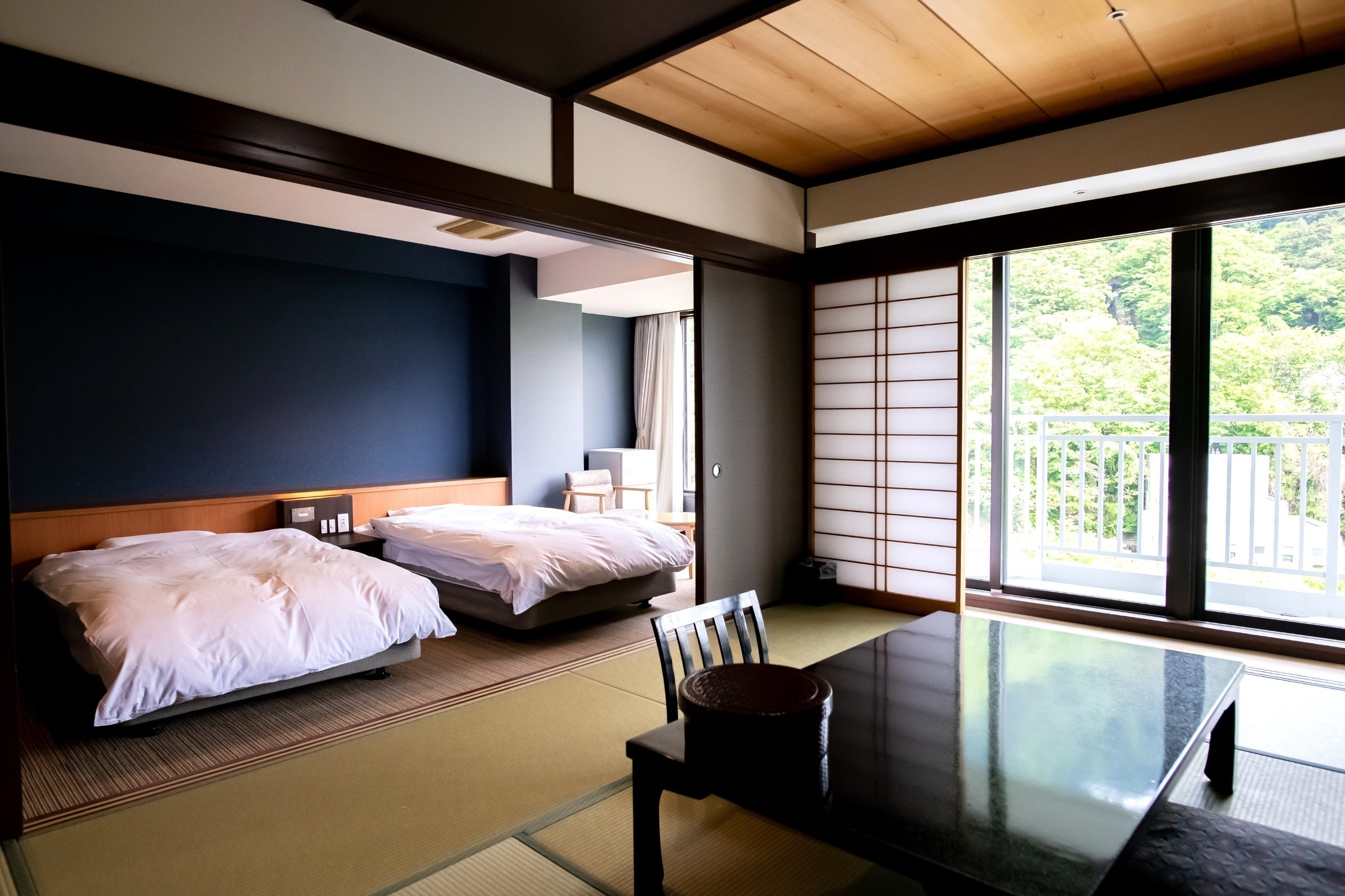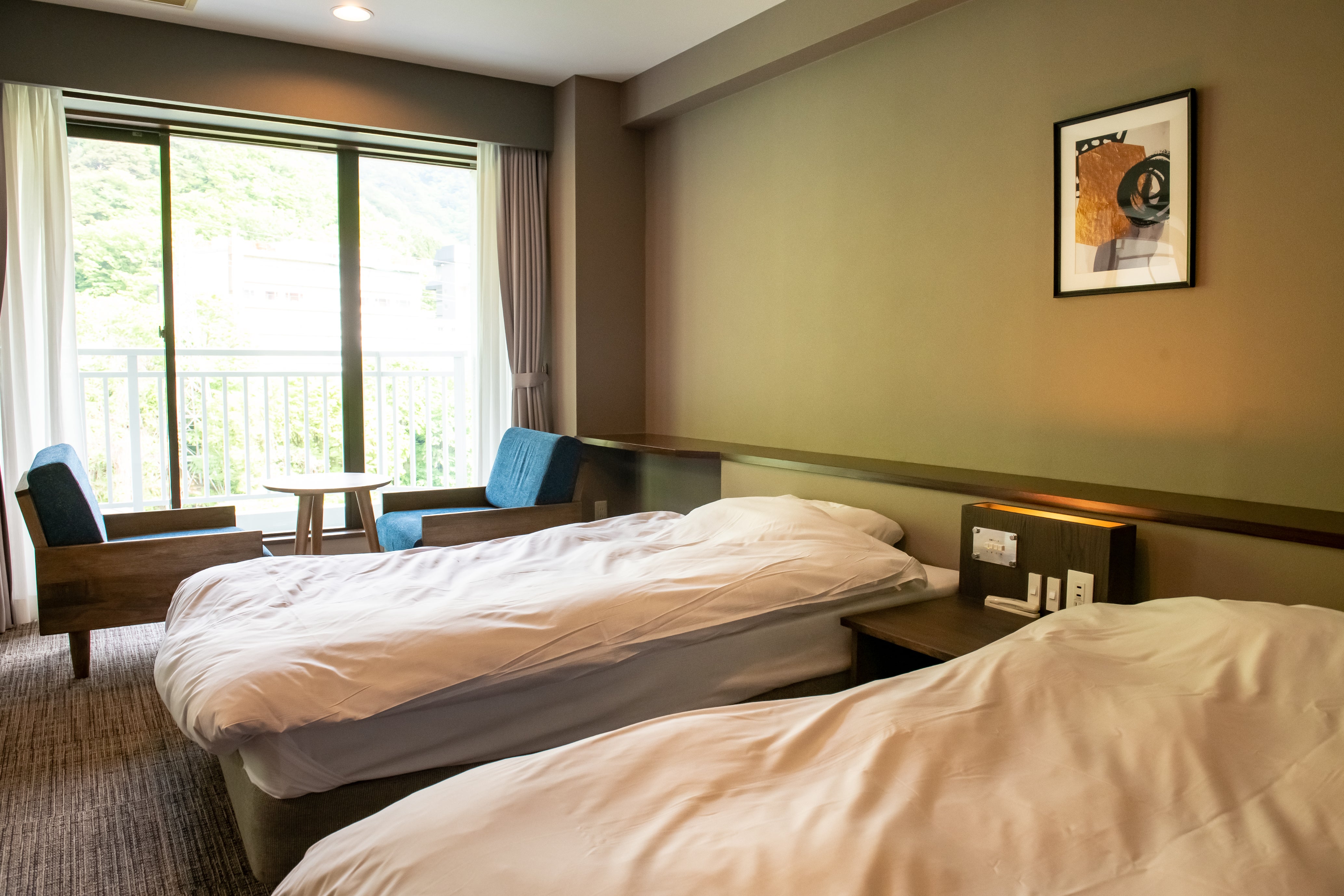 ご家族やグループ旅行におすすめの和洋室です。お布団とツインベッドをそれぞれ備え、最大6名様までご宿泊いただけます。