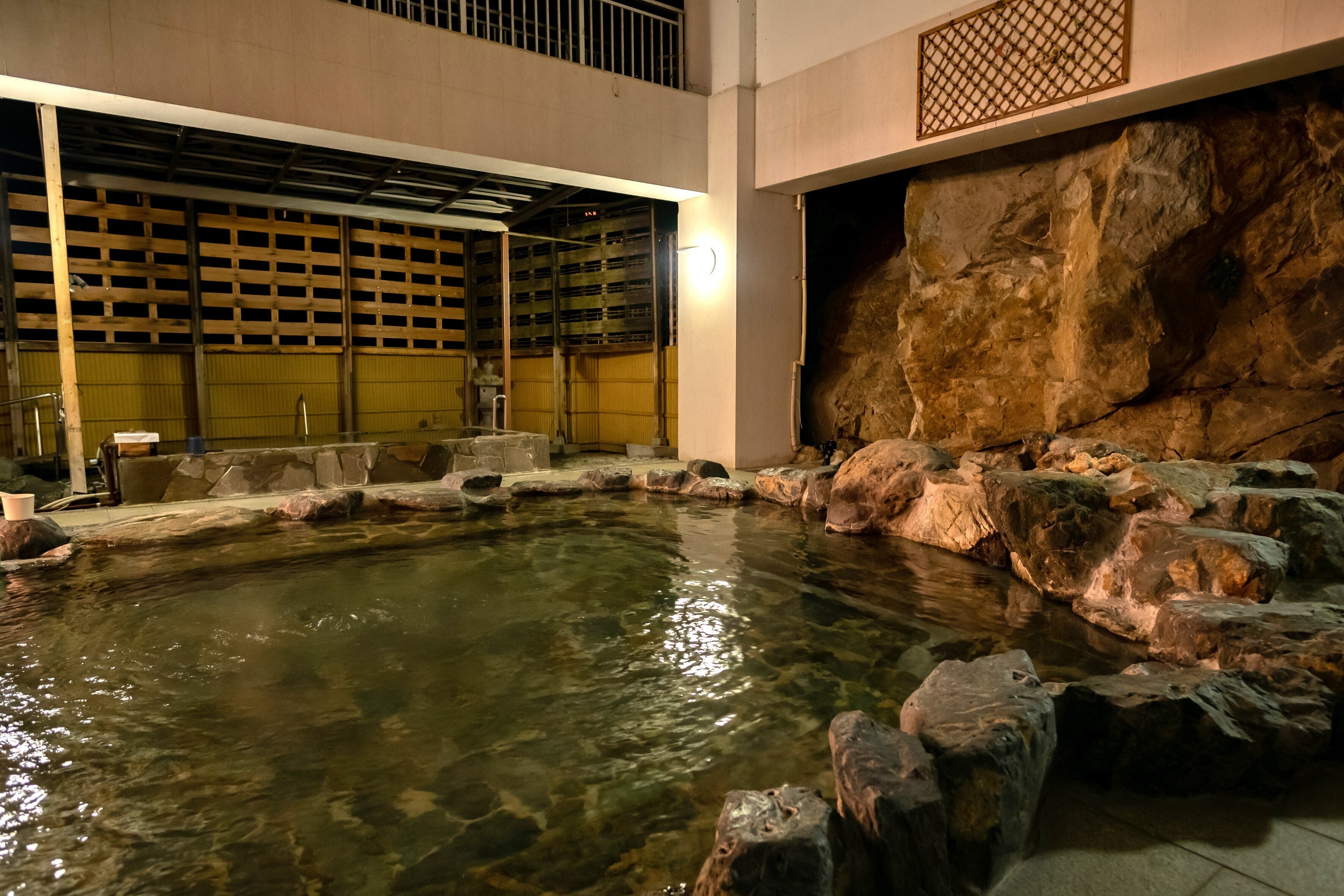 和室、和洋室を含む6種類の客室タイプを取り揃え、館内には、岩風呂や内風呂があり、なめらかなアルカリ単純泉が肌に優しくなじみます。