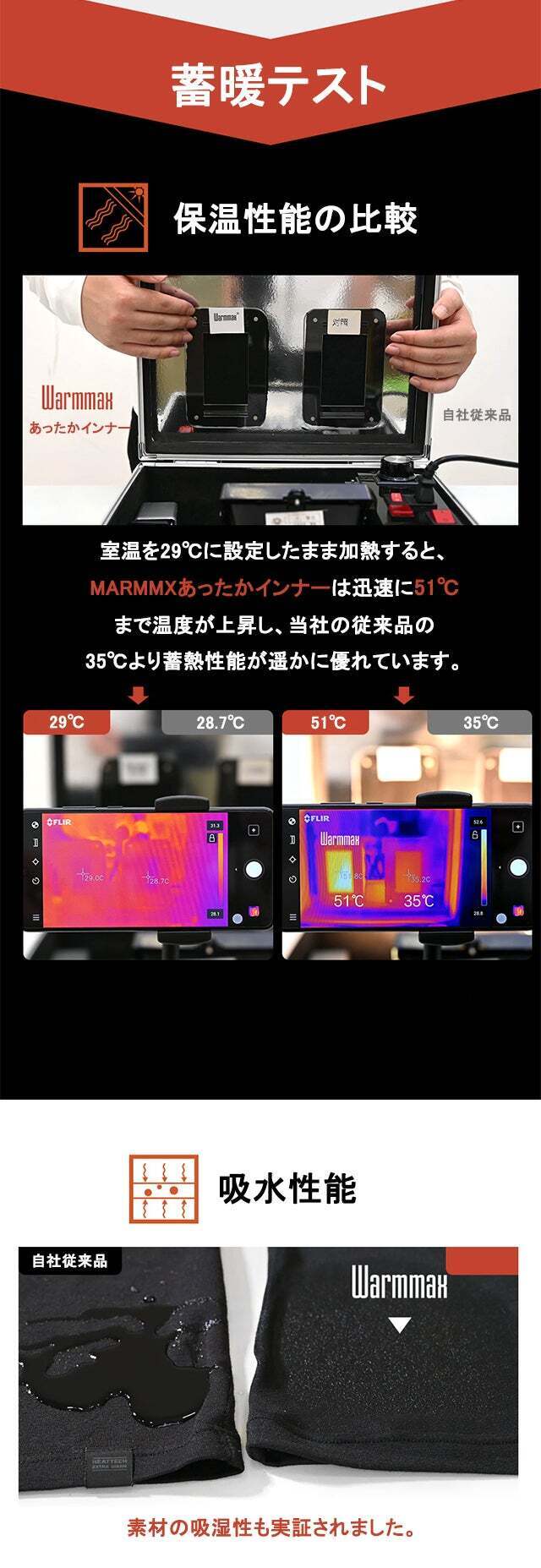 そして本製品は特に蓄熱性能を重視し、一見普通のインナーと変わらないのではと思いますが、特殊製法のおかげで熱を逃さずに保温し、暖かい状態を保つ効果があります。
