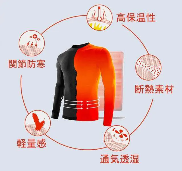 普段着ている洋服の下に着用すると、体から発せられる熱を閉じ込めて暖かさを維持してくれる働きがあります。