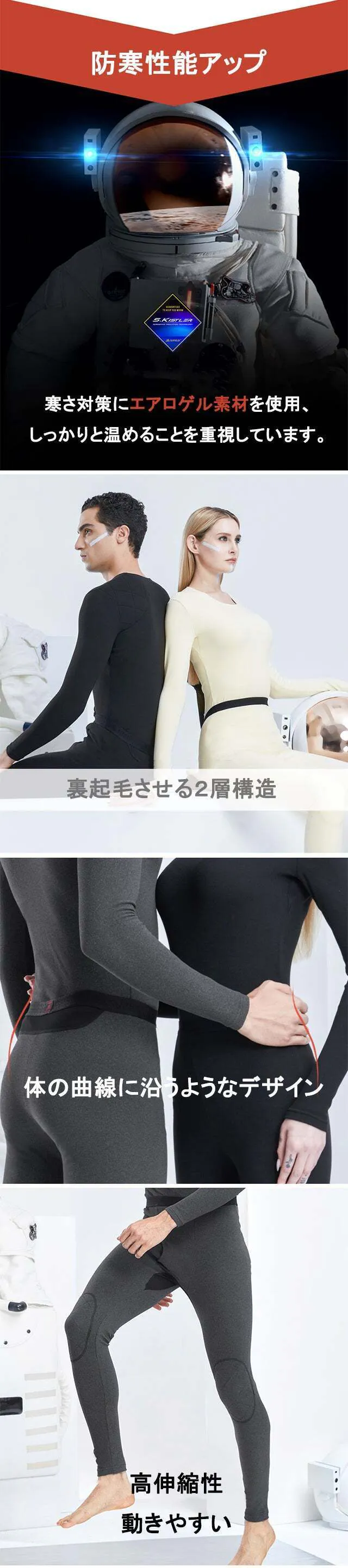 肩や膝など大事な部位を集中的に保温する「エアロゲル仕様」になっているので、部分的に寒さが気になるという方にも向いています。