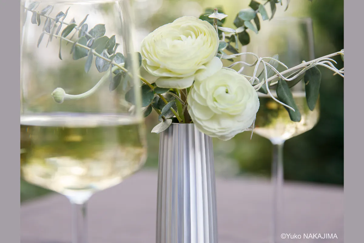 ポイント①:光を受けて繊細に輝く花を美しく⾒せる花器