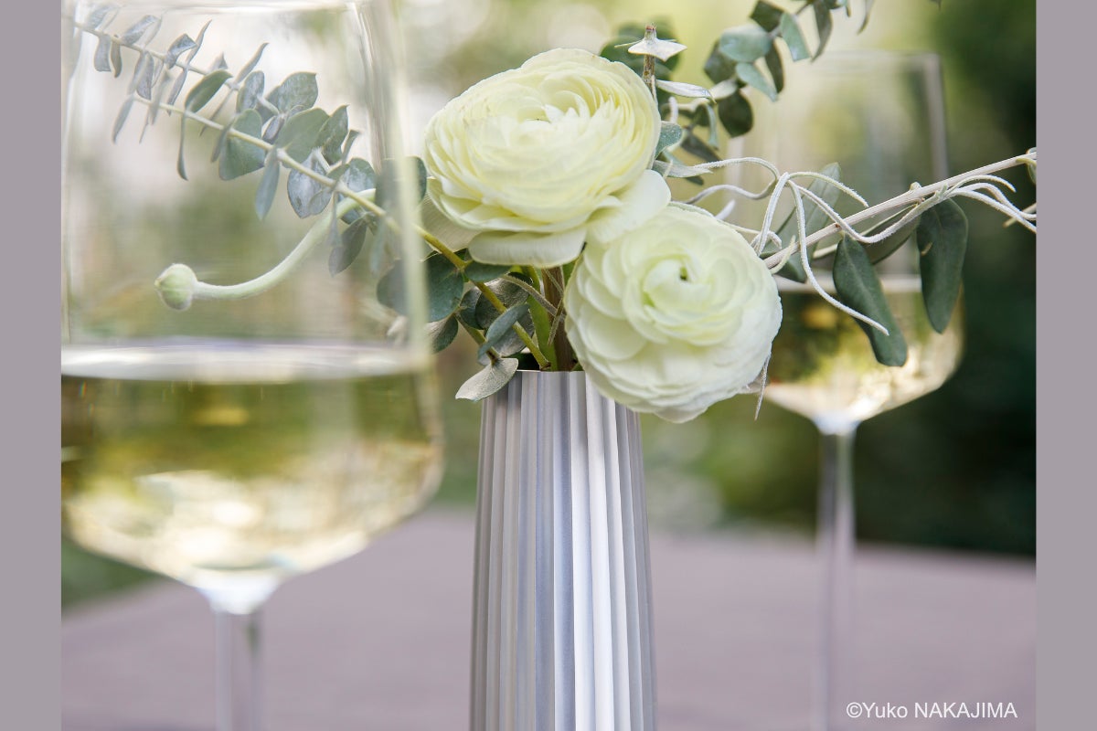 ポイント①:光を受けて繊細に輝く花を美しく⾒せる花器