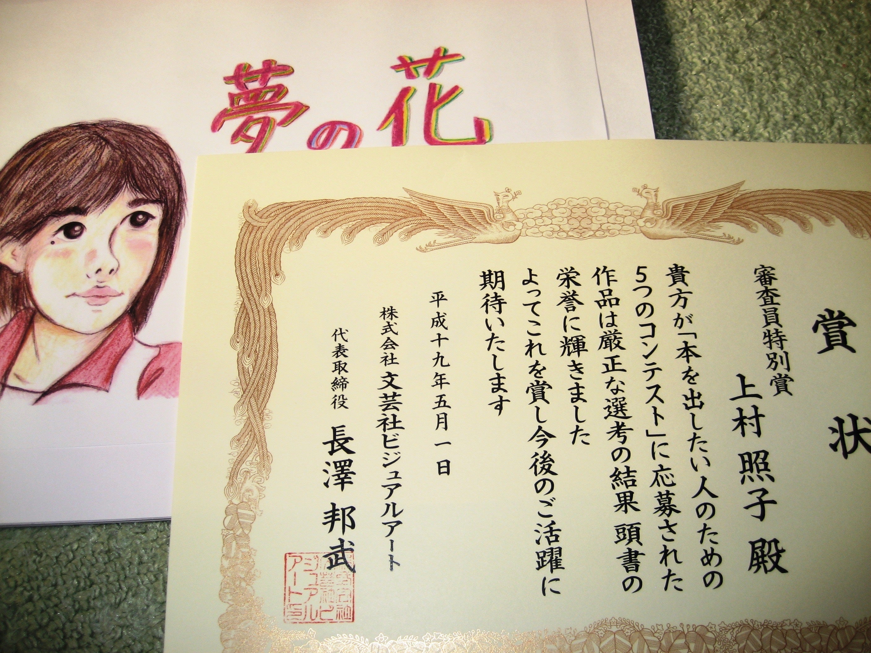 絵本のコンテストで賞をいただいた時の賞状