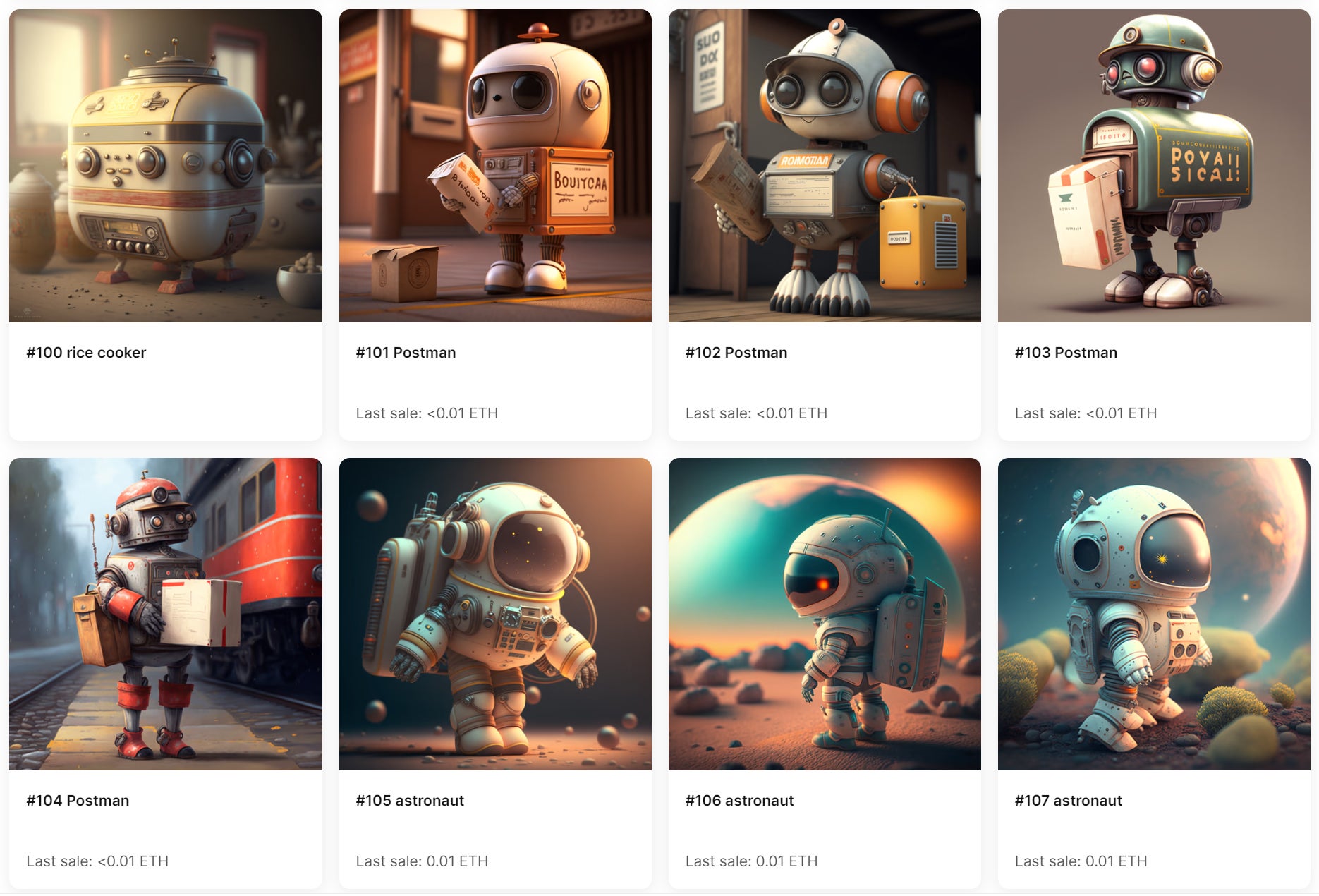 • ジョニーの記憶は「AIアート」を使って参考イメージを生成し、それをアクリル絵の具を使って描くという、デジタルとアナログを融合する使い方をしています。登場するロボット達の「NFT」を発行しています。