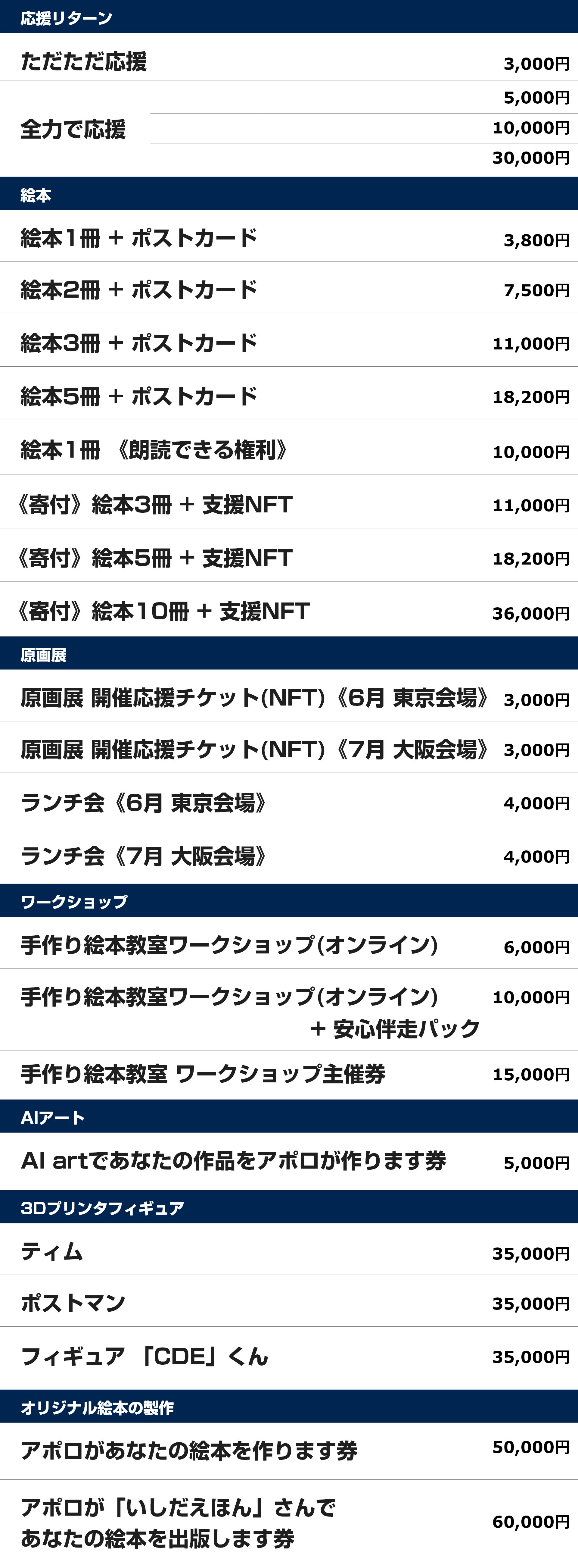 • あっという間に5月も終わろうとしています。新緑の青空が眩しい季節から、一気に猛暑を感じる夏の訪れを感じているアポロです。クラウドファンディングの応援とご支援をいただいた皆様へ、心から感謝申し上げます。リターン品の集約と発送状況について5/24㈮現在のご報告をさせていただきます。※以下の内容について、ご質問などございましたらお知らせください。《既にお届けできている返礼品》・絵本「ジョニーの記憶」:日本語版/英語版発送状況:77人へ104冊発送と手渡し済 ※内英語版15冊・寄付3冊の支援で寄贈先をアポロが決める絵本7冊/12冊(残り5冊!希望者お知らせください!!)・幻のデビュー作「夢の花」1冊・前作「レトロボものがたりぶるんはみんなのたからもの」3冊・ただただ応援:14人・全力応援5,000円:4人・全力応援10,000円:5人・全緑応援30,000円:5人・つぶぐみ:33人(70個)・ペンと紙:8人(8個)・入浴剤:7人(19個)・シーグラスコースター:4人(4個)※お2人から原画展での展示を希望のため預かり中・3Dプリンタフィギュア:2人※お2人から原画展での展示を希望のため預かり中・原画展応援チケット※ポストカード/NFTのみ東京:10人大阪:10人※アイコンとネームのアクリルフレーム制作中!《これからお届けしていく返礼品》随時個別に対応しながら進めて行きます!・スポンサーになれる権利7人:12回分のスポンサー配信6/3~スタエフでスポンサー配信させていただきます。・AIartで作品作り:1人・水彩色鉛筆講座:3人・手づくり絵本オンラインワークショップ:7人・オンラインお話し会:5人・アポロ計画運営:2人・原画展ダイジェスト動画:4人・原画展ランチ会東京:5人大阪:4人沢山の応援とご支援いただいき、改めまして心から感謝申し上げます。戴いた支援金並びに今後の絵本の売り上げ印税になどは、絵本製作費用、原画展やグッズ販売資金、そして「絵本作家未来コミュニティ」の運営に使わせていただく所存です。ありがとうございます。そして、本日夜9時からみおさんと「クラファンのその後」について久しぶりにスペース配信いたします。原画展の準備に燃えている今のアポロを感じてください!(笑)聞きに来てくださいね!https://x.com/yumexmio/status/1792537184052072862 もっと見る