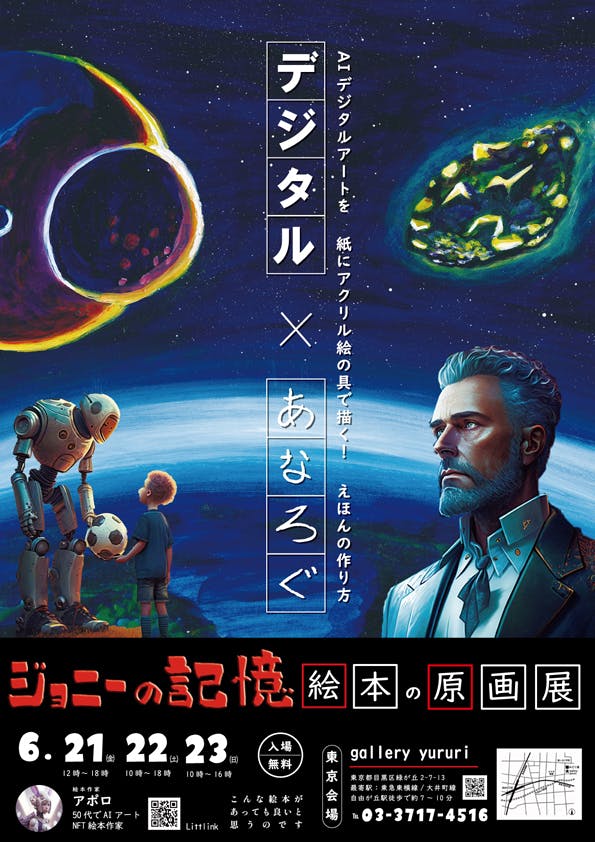 ・絵本「ジョニーの記憶」はAIアートNFTを参考にアナログな手描きの絵を描いて作られた絵本であること