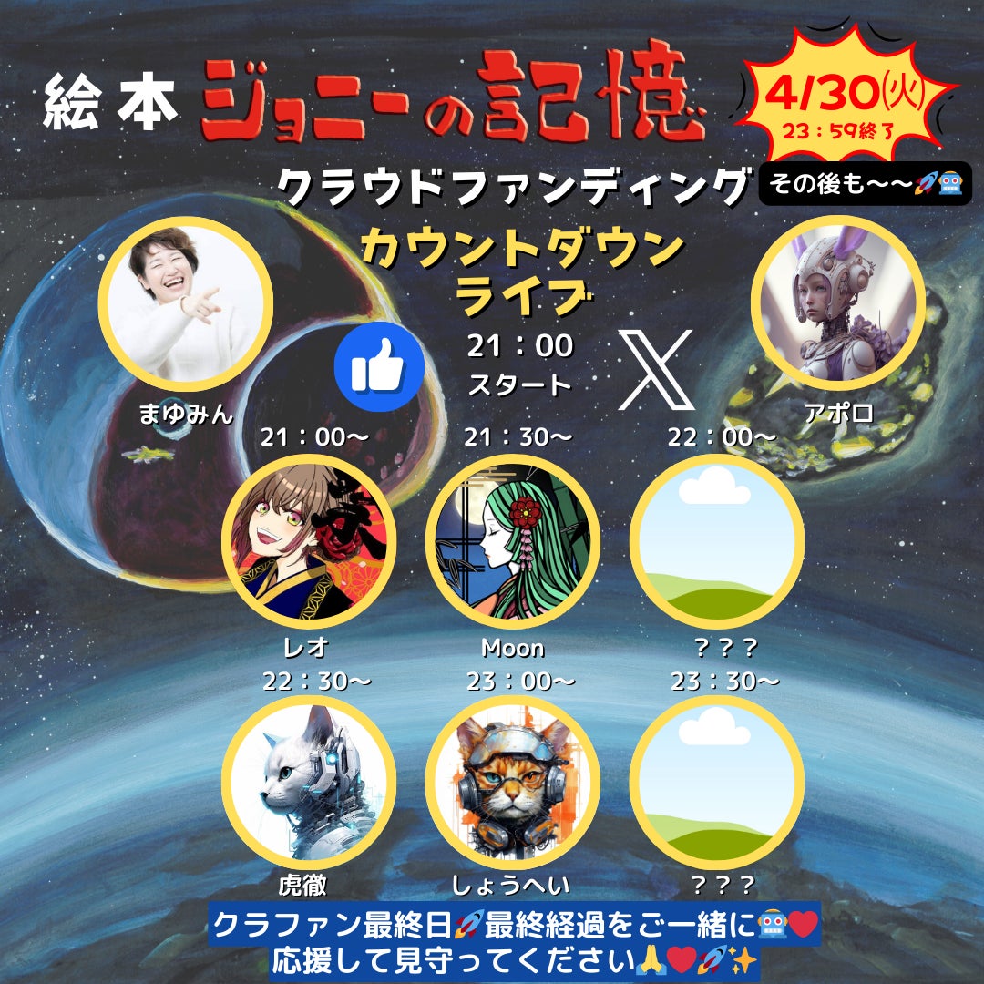 夜は21:00からカウントダウン配信を行います。ご支援をいただける23:59:59まで皆さんと一緒に駆け抜けます!結果を見守ってくださると嬉しいです。