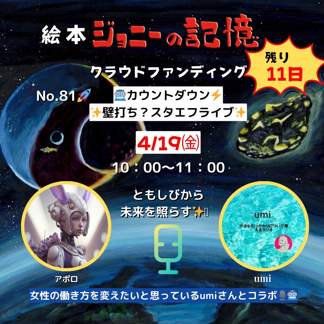 100人壁打ちチャレンジもついに81人を突破しました!お相手は、 女性の働き方を変える活動をされているumiさん(水野和奏さん)。昨年クラウドファンディングにもチャレンジされ見事に達成されています。どんなお話が聞けるのでしょう!楽しみです。