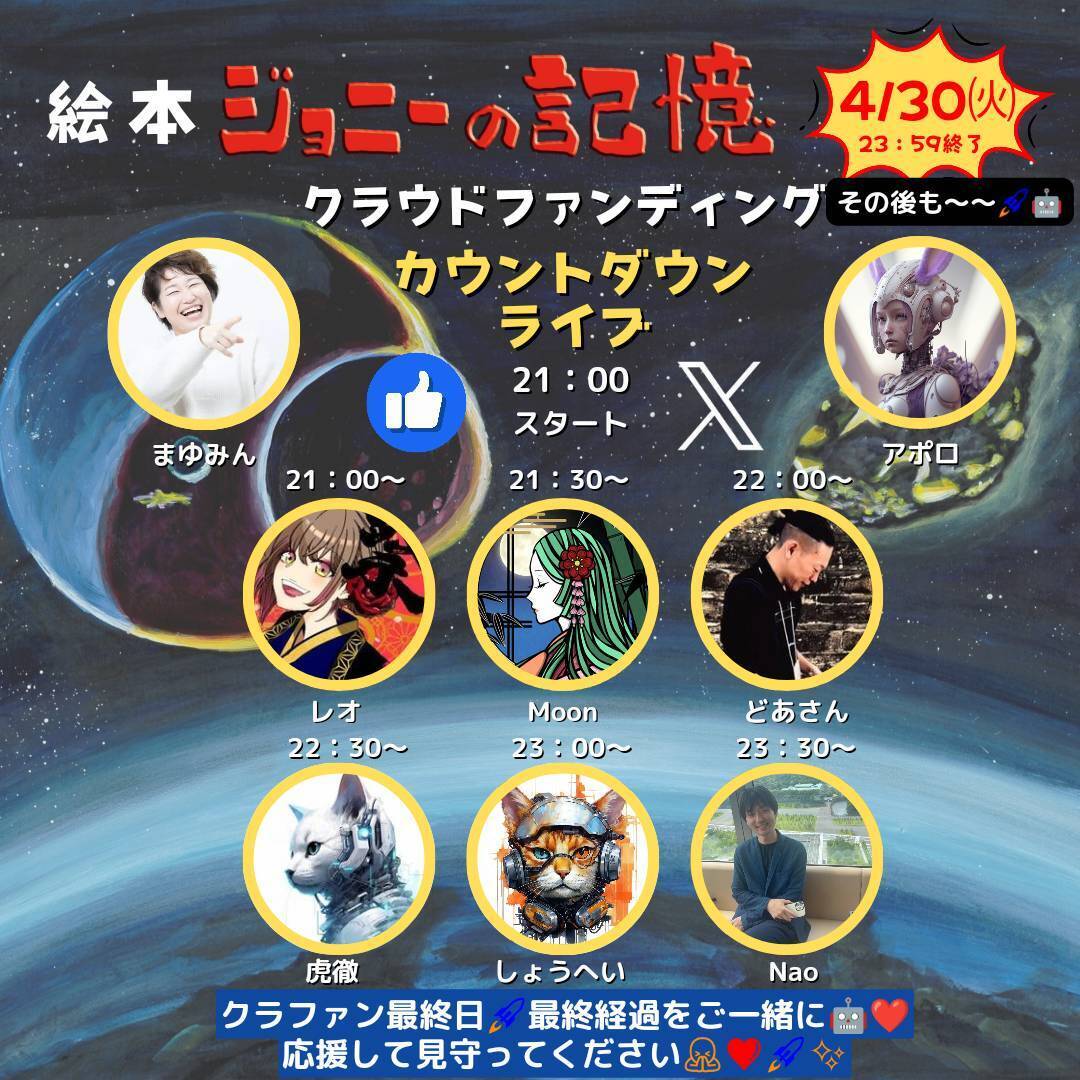 夜は21:00からカウントダウン配信を行います。ご支援をいただける23:59:59まで皆さんと一緒に駆け抜けます!結果を見守ってくださると嬉しいです。