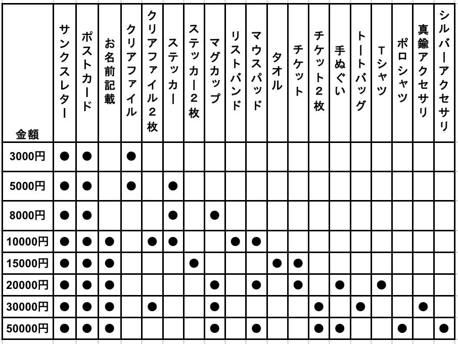 クラウドファンディングのお礼として以下のリターンになります。