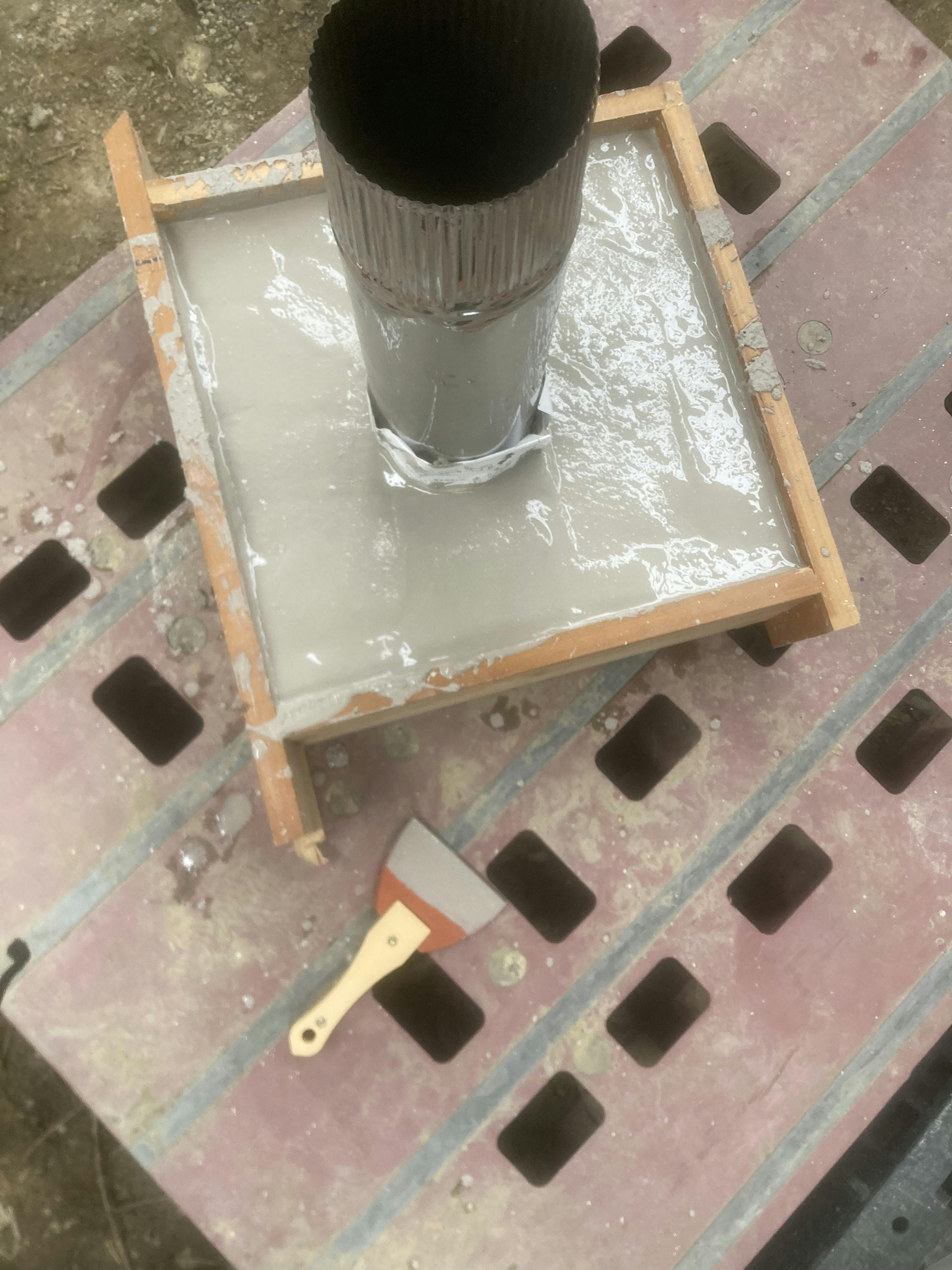 2024/03/20 19:51アサヒキャスターに水を加え練り込み、木製の型枠に流し込み、煙突を通す穴を作りました。完成は1週間ほど乾燥してからになります!アサヒキャスターは最高使用温度1500℃(常用温度1300℃)ということで、薪ストーブを向かい入れる準備は万端です♪ もっと見る