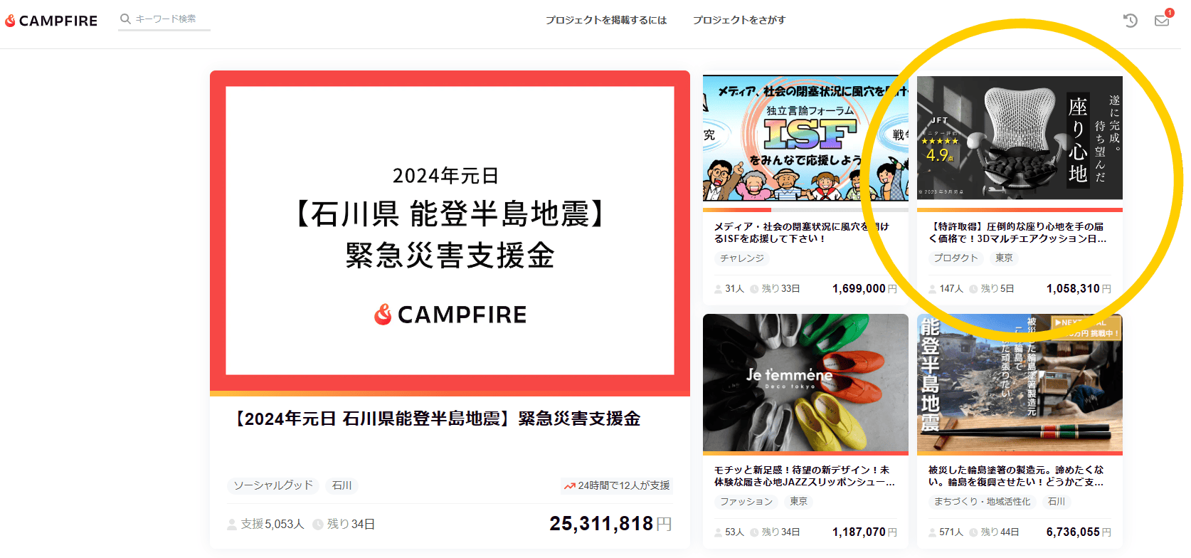 キャンプファイヤーのトップページに弊社プロジェクトが掲載開始されました!