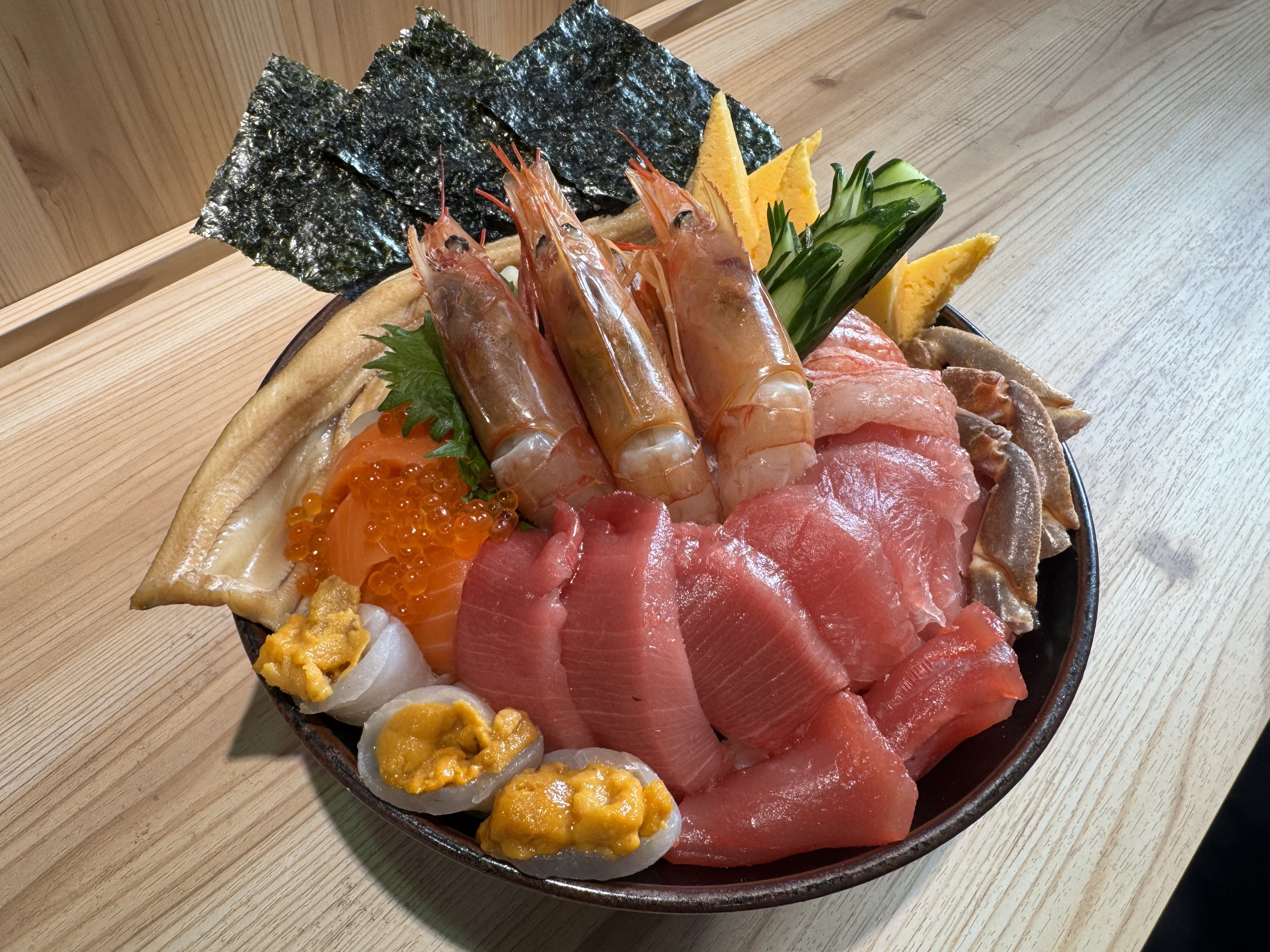 ①超豪華映え盛り海鮮丼(1日限定5食、税込5,000円)