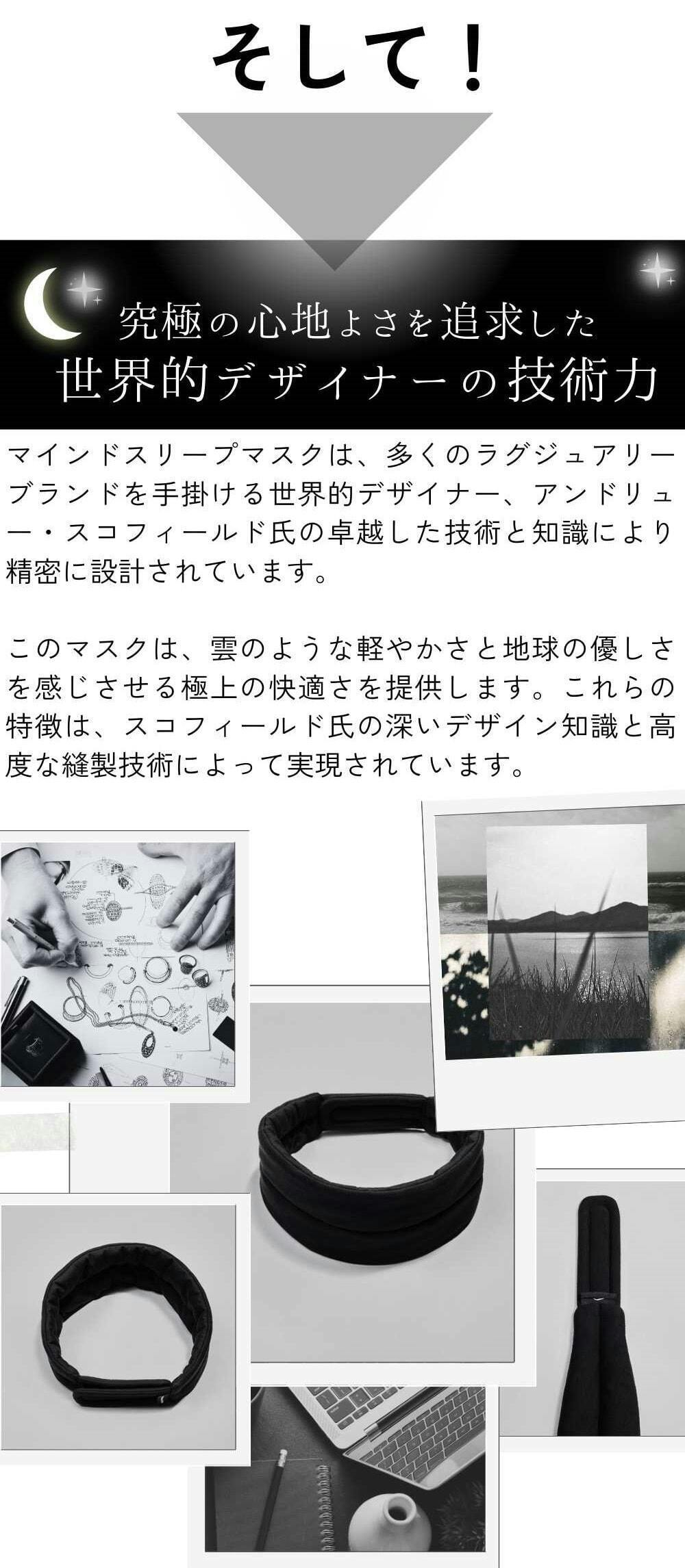 世界的デザイン技術よって引きだされた独自の特性を持つマインドスリープマスクが、現代の寝つき問題に悩む多くの方々にとって、有益なサポートとなることを期待しています。