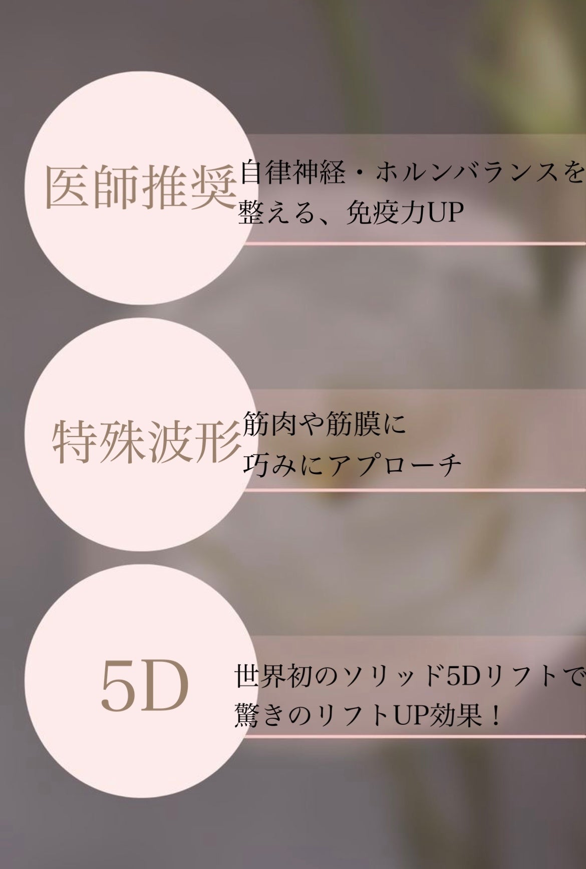 上記のお悩みにアプローチするMineaValleyでの施術は以下の3つです。