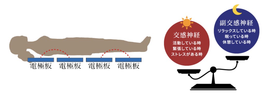 図の電極板では疑似生体電流を流すことができ、電極板の上で寝ているだけで、生体電流を補えることができます。15分当てて頂くだけで8時間の睡眠を取るのと同じくらいの効果があります。