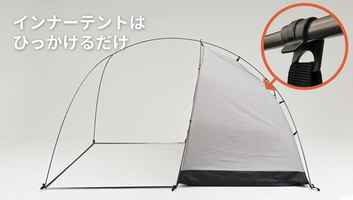 インナーテントは簡単に設営が可能な吊り下げ式です。