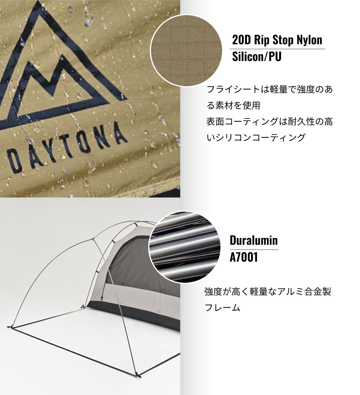 ●素材 外幕:リップストップナイロン 20D/シリコンPU(耐水圧3000mm)