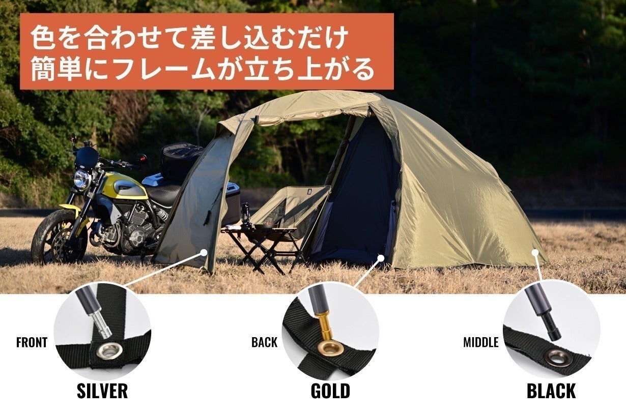広くて快適なテントは、持ち運びが困難で、移動が大変とあきらめていませんか?そんなバイクライダーにもお勧め!2ルーム構造のドーム型テントが改良!