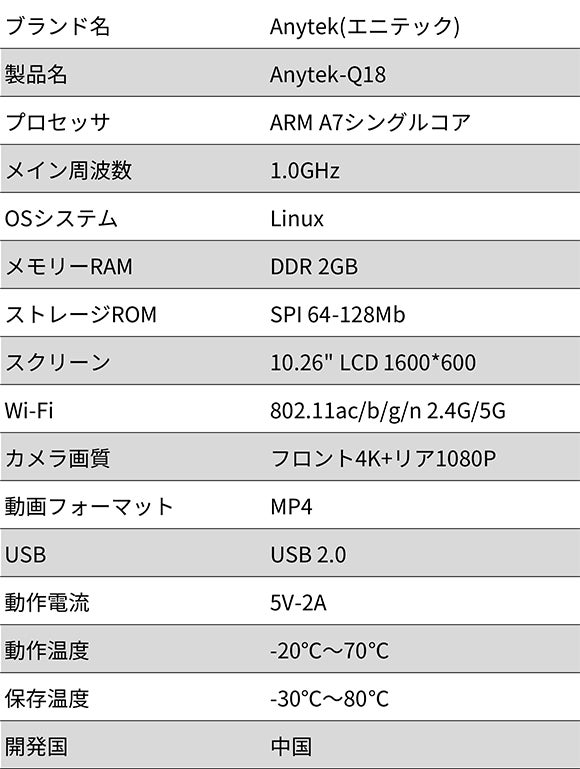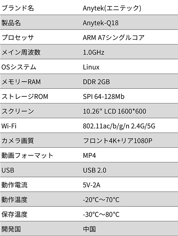 「Anytek-Q18」は最大256GBの大容量ストレージ対応で、最大15,000時間の連続録画が可能。さらにループ録画(自動上書き)機能も搭載され、自動で最新の映像が上書きされます。