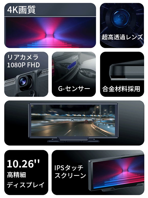 1、4K+1080P超高画質、超広角で死角なく鮮明に記録