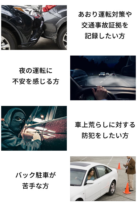 想定外の事故に遭遇した場合、皆様の安全のため、「高画質」「高性能」のドライブレコーダーは必要不可欠です。