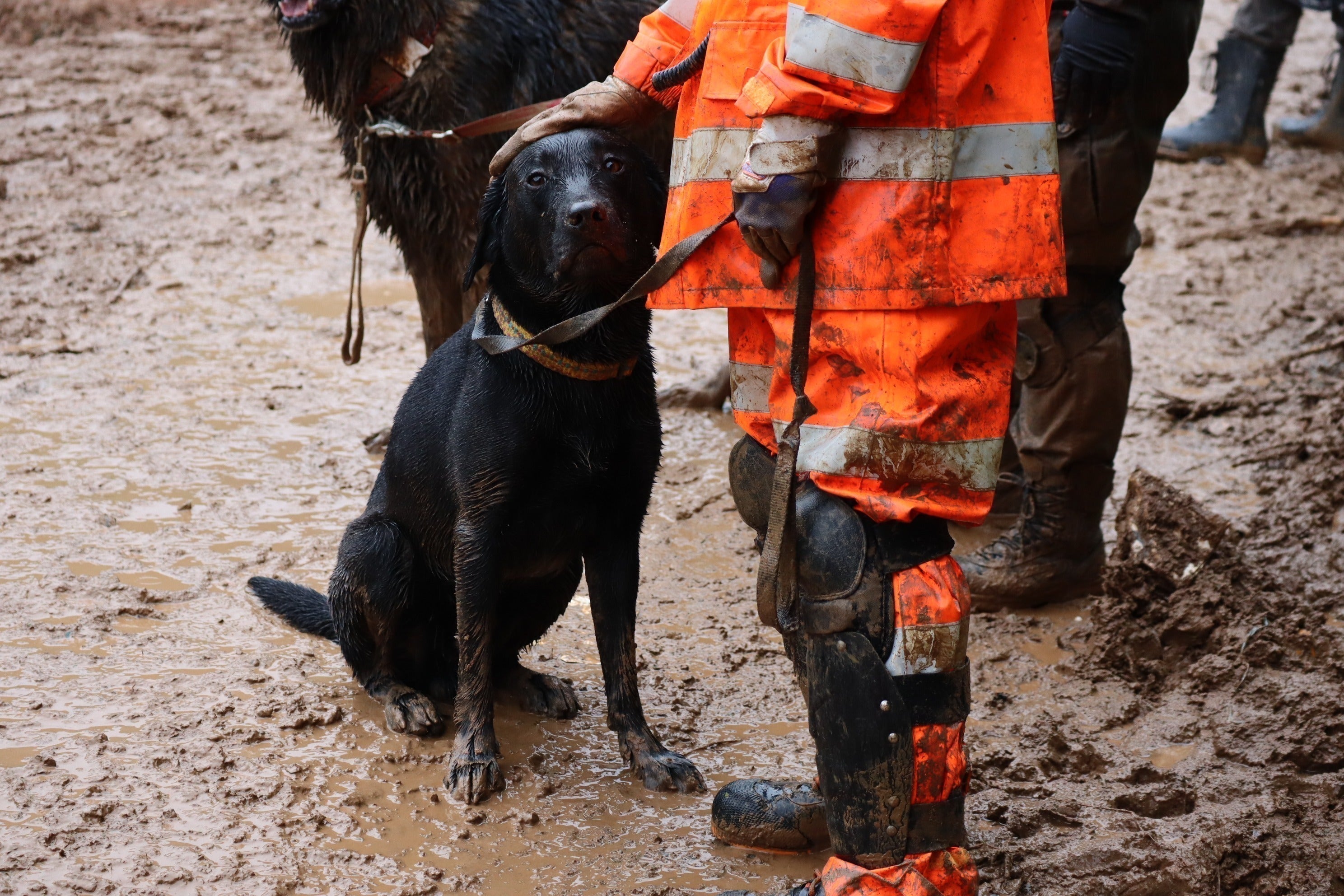 「災害救助犬」とは自然災害により瓦礫や土砂の下敷きになった行方不明者を、においを頼りに発見するよう訓練された犬のことです。