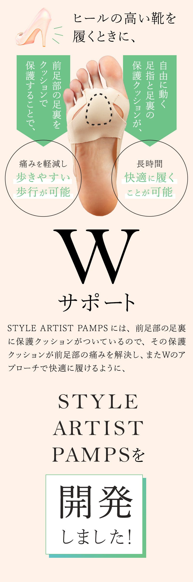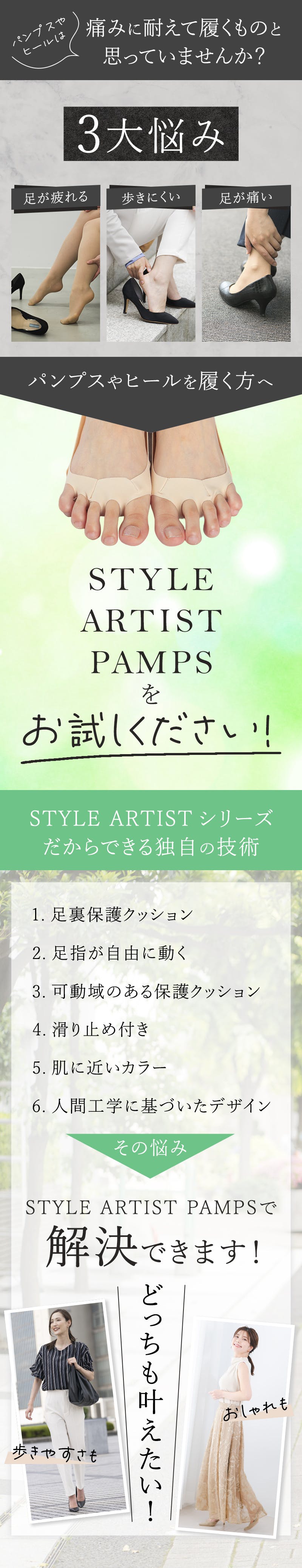 STYLE ARTIST PAMPSならではのWのサポートで長時間快適に履けて痛みを軽減しながら歩行が可能な女性専用のSTYLE ARTIST PAMPSが完成しました。