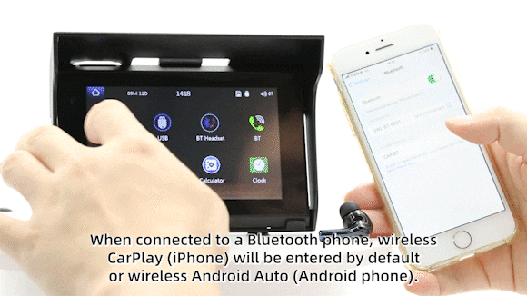 ※iPhoneミラーリングの場合、スマホでしか操作できません。Androidミラーリングの場合はアプリ「Mirrorlink APK」をダウンロードする必要があります。(本製品側の操作が可能です。)