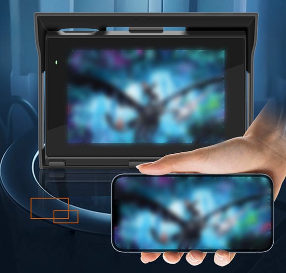 「LUPA-B5350」は有線ミラーリング機能を搭載しており、スマホの画面がそのままディスプレイ全体に表示されます。乗車したままビデオやゲームを楽しむことができます。