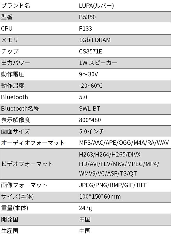 「LUPA-B5350」は、音楽再生スピーカーが内蔵しており、走行しながら音楽をかけることや、ナビの音声ガイドを確認することもできます。